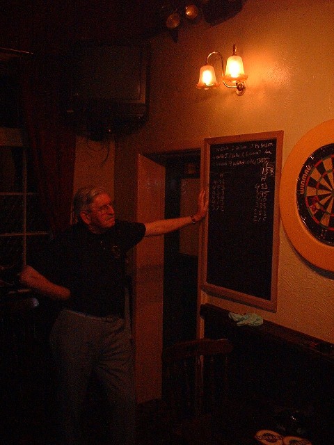 | Chairman Len, the winner AND highest scorer, at the scoreboard. |