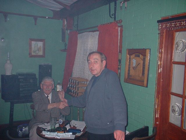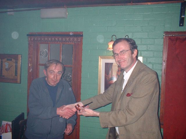 | Runner-up Len Ellis receives a tin of tobacco from PCN secretary, Keith Garrard |