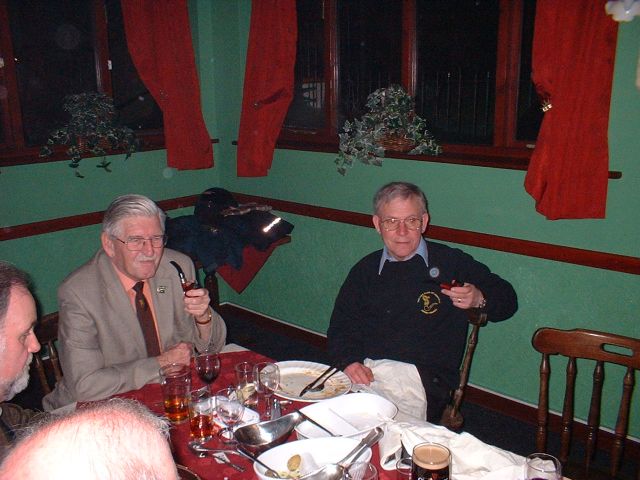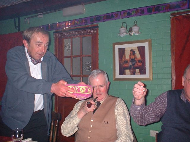 | Colin Wylie (right), winner of the 2005 Clay competition, receives his prize of a Parker pipe from PCN chairman Len Ellis. |