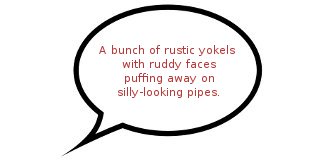 '...a bunch of rustic yokels ...with ruddy faces, puffing away on silly-looking pipes.'